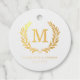 Étiquettes de faveur de mariage rondes en feuille métallique avec monogramme de blason élégant. Le mélange parfait de personnalité et d'élégance !