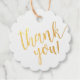 Des étiquettes de Merci imprimées sur mesure abordables avec de la feuille d'or ou de l'argent réel. Ce design simple présente "merci" dans un script écrit à la main avec votre texte personnalisé à l'envers. Choisissez parmi le papier kraft réel ou le stock de carte blanche mat et éditez le côté arrière avec n'importe quelle couleur et polices arrière - plans pour coordonner avec vos couleurs et votre thème de baby shower.