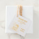 Ces étiquettes de faveur de mariage présentent une illustration charmante d'or d'une mariée et d'un marié. Cette illustration simple, en forme de dessin animé, suggère un lien amoureux des cordes entre eux. C'est fantaisiste et attachant, donnant un ton joyeux au prochain mariage. Personnalisez le message de remerciement pour vos invités !