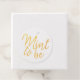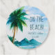Véritable feuille "Mint to Be" libellé sur le devant d'une étiquette de faveur avec un tableau d'aquarelle de palmier tropical île et "sur la plage" libellé spécialement pour les mariages de plage ou un thème de fête de plage. Personnalisez avec votre nom et votre date mariage pour une fête de mariage amusante en bonbon en étain.