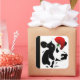 Une mignonne étiquette cadeau de vache noire et blanche avec un chapeau de Père Noël rouge et blanc festif sur sa tête. Customiser plus loin ou acheter tel quel.