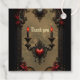 Romance gothique : Passion cachée. Un cadre décoré dans le style gothique, conçu avec une fine fibre noire, avec des lignes délicates et des détails complexes qui rappellent les sculptures anciennes et ornées. Les roses rouge vif sont intégrées dans le cadre, leurs fleurs veloutées créant un contraste éclatant avec le fard noir, soulignant l'humeur romantique. Des ornements en forme de coeur ornent les coins et les bords du cadre. Deux bougies noires aux flammes rouges brillent doucement, conférant à l'ensemble une touche chaleureuse, légèrement sombre.