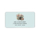 Address labels with a vintage styled camera decorated with flowers. Pastel colors of pink, cream and green.