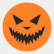 Un design autocollant simple avec un visage citrouille effrayant en noir sur un arrière - plan orange. Ce serait l'ajout parfait pour sceller une enveloppe contenant des invitations à Halloween ou pour distribuer à une fête d'Halloween pour enfants.