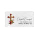 Étiquettes de adresse avec une jolie illustration représentant une simple croix en bois recouverte de fleurs roses et de feuilles verts.