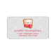 Étiquettes de adresse avec un joli et adorable visage d'ours dressé sur une base de biscuits. Portant un foulard rayé rouge et blanc. Arrière - plan est un motif qui a l'air de tomber la neige, en argent et blanc.