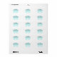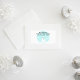 Un design simple avec un bonhomme de neige dans un boule de neige aqua, avec des collines enneigées et des flocons de neige.