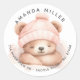 Autocollant d'étiquette d'adresse de Baby Shower d'ours câlin mignon pour une baby shower de fille et une annonce de naissance.