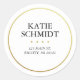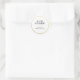 Étiquette d'adresse de retour ronde blanche avec des accents de feuille d'or faux. VEUILLEZ NOTER : Le étiquette imite un effet de feuille, mais n'est pas réellement déjoué.