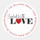 Autocollant scellé avec amour cercle avec nom de famille et adresse de retour. Mignon à coller sur des cadeaux ou au dos de vos enveloppes de cartes de vacances.