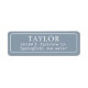 Classic Elegant white sur des étiquettes d'adresse de retour bleu poussiéreux avec une police serif traditionnelle pour une sensation simple et chic.