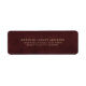 Améliorez vos envois grâce à notre étiquette d'adresse de retour simple et classique. Le design comprend le nom et l'adresse de votre entreprise en typographie dorée classique sur un riche arrière - plan bordeaux. Ces étiquettes apportent une touche de finition polie à vos enveloppes, renforçant le professionnalisme de votre marque et l'attention portée aux détails.