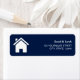 Élégantes étiquettes d'adresse de retour comportant une icône d'accueil mignonne contre un arrière - plan bleu foncé.