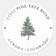 Autocollant rond classique d'étiquette d'adresse de retour de mariage d'arbre de pin de forêt de montagne