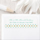 Les étiquettes d'adresse de la pochette élégante, faites en blanc, avec des rangées de pois vert menthe et or, à travers le fond. Personnalisez le texte vert menthe pour répondre à vos besoins. Des enveloppes assorties, des timbres et des produits mariages sont disponibles.