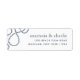 Les étiquettes d'adresse de retour chic côtier comportent les détails de votre adresse de retour en lettres bleu marine sur un arrière - plan blanc immaculé, accentué d'une corde nautique à boucle blanche.