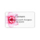 De magnifiques étiquettes de retour décorés d'oeuvres florales vibrantes. Le design présente une fleur rose frappante encadrant le texte, créant un aspect élégant et festif. Le texte est écrit dans une combinaison de polices joueuses et classiques, ce qui renforce son aspect accueillant et sophistiqué.