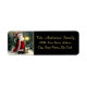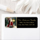 Belle étiquette d'adresse de retour de Noël avec le Père Noël tenant une lanterne et son personnel dans sa main gauche et portant un sac rempli de cadeaux sur son épaule droite sur l'arrière - plan noir. Cliquez sur le bouton "Personnaliser" pour ajouter votre propre nom, modifier le style de police, la couleur de police, la taille de police et la couleur arrière - plan pour répondre à vos besoins.