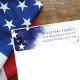 Étiquette d'adresse de retour rouge blanc et bleu