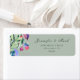 Étiquette de l'adresse de retour de la collection mariage Spring Berries. Cette collection porte sur les fleurs et les baies de source d'aquarelle vibrantes dans les tons violets et rougis avec vert pastel arrière - plan et élégant script