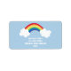 Ces étiquettes d'adresse de retour en arc-en-ciel fantaisiste ajoutent une touche de finition parfaite à votre invitation à la fête d'anniversaire en arc-en-ciel ou à votre note de remerciement. Doté d'un arc-en-ciel illustré avec deux nuages moelleux sur un arrière - plan bleu clair. Magasinez la collection de coordination complète pour tous vos besoins de la fête arc-en-ciel.