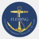 Une ancre dorée se distingue par son arrière - plan bleu marine pour un design nautique classique. Personnalisez le design avec votre nom de famille et votre adresse. Cet autocollant d'adresse est parfait pour une nouvelle mariée pour montrer son nouveau nom de famille, et se marie bien avec le thème classique du mariage nautique.
