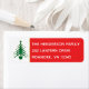 Ces étiquettes d'adresse de retour sont de couleur rouge et blanche avec un feuillet simulé vert et or Noël ou un arbre de Noël. Le nom et l'adresse blancs sont la même police que celle utilisée sur la carte de voeux correspondante et peuvent être personnalisés comme vous le souhaitez.