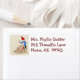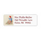 Une jeune fille gnome cousant une courtepointe sur un étiquette de adresse