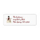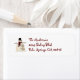 Jolie étiquette d'adresse de retour, avec des images primitives d'un bonhomme de neige debout à côté d'un petit pin.