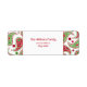 Un étiquette de adresse de Noël avec un cachemire rouge et vert et un texte rouge.