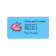 Un étiquette de adresse avec un mignon petit cochon volant aux ailes blanches souriant doucement à lui-même. Customisez le texte pour représenter votre besoin.