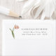 Une simple étiquette de adresse de retour élégante présente une tulipe pêche au pinceau avec une typographie gris foncé pour votre nom et adresse