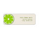 Un étiquette de adresse avec l'illustration d'une tranche de chaux à gauche. Personnalisez le texte vert avec votre nom et votre adresse.
