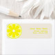 Un étiquette de adresse avec l'illustration d'une tranche de citron à gauche. Personnalisez le texte jaune avec votre nom et votre adresse.