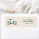 Un étiquette de adresse avec l'illustration d'un vélo bleu clair à gauche. Personnalisez avec votre adresse à droite de la moto.