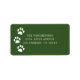 Ce design de vacances propose des empreintes de pattes blancs sur un arrière - plan vert à côté de votre nom et adresse.