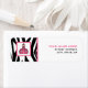 Étiquette d'adresse de retour pour les enseignants avec une illustration du logo Pink Schoolhouse à gauche sur un arrière - plan imprimé zèbre avec garniture rose. Personnalisez avec votre nom et votre adresse à droite.