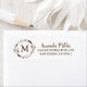 Étiquette de adresse floral de retour de monogramme de guirlande de boho d'aquarelle.