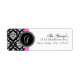 Monogram G Faire-part de mariage Adresse de retour Label avec noir et blanc damassé et couleur accent rose. Customisez avec votre initiale monogramme, nom et adresse. Choisissez aussi la couleur arrière - plan et la couleur monogramme. Copyright Elke Clarke et les concédants.