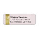 Une belle et élégante adresse_étiquette avec son nom et des informations supplémentaires sur un arrière - plan rose gris très pâle avec une fausse bande verticale or avec ses initiales