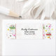 Un étiquette de adresse avec un motif avec des illustrations de campeurs vintages, flamants roses, abeilles et fleurs.
