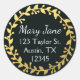 Étiquette de adresse rond noir et or