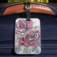 Étiquette de bagage à fleurs de rose rouge aquarel