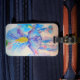 Étiquette de bagage à fleurs d'iris bleu aquarelle