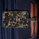 Étiquette de bagage à fleurs monogramme. Cette étiquette de bagage élégante et sophistiquée à motif de fleurs sauvages présente de superbes fleurs sauvages peintes à la main à l'aquarelle, disposées selon un motif charmant sur fond noir. Trouvez les articles assortis dans la collection de mariage Black Boho Wildflower.