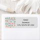 Ces étiquettes d'adresses de retour ont un design moderne atomique du milieu du siècle de formes boomerang, antennes et starbursts en turquoise, orange.
