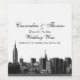 NYC Skyline Wide Angle Etched Look 01 Invitation Suite - Wine Bottle Étiquette Élégantes, chic et élégantes invitations personnalisables et accessoires avec un large angle iconique noir et blanc gravé vue East River de l'horizon de New York City, avec l'Empire State Building, Chrysler Building et beaucoup d'autres. . Veuillez noter qu'il s'agit d'un dessin graphique / photo transféré au produit sous-jacent, et qu'il ne contient aucun tissu, ruban, métal, gravure, pierres précieuses ou gaufrage. 2012 ©NYCisMyMuse Tous droits réservés