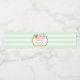 Bouteille d'eau texte personnalisé étiquette en motif à rayures vert et blanc menthe avec fleurs vintages d'aquarelle rose clair et cadre doré. Peut être customisé pour toute occasion, parfait pour les douches nuptiales, mariages, baby showers et fêtes d'anniversaire.