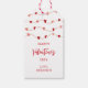 Étiquette de cadeau de la Saint-Valentin avec une bordure de cœurs rouges et roses sur une ficelle