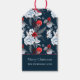 Rendez vos cadeaux de vacances encore plus spéciaux avec notre étiquette de cadeau de Noël joyeux au feuillage argenté rouge bleu. Ces étiquettes charmantes présentent le motif intemporel du feuillage des fêtes de minuit bleu rouge et gris argenté, avec un salut sincère "Joyeux Noël", et un nom personnalisable, ajoutant une touche personnelle à chaque cadeau.